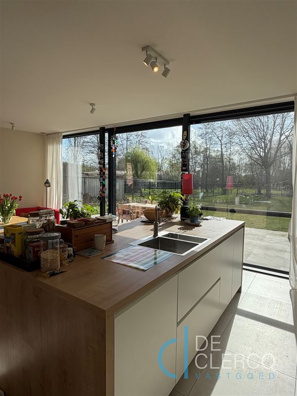 De halfopen woning is modern afgewerkt met een landelijke charme en als volgt ingedeeld: een verwelkomende inkomhal met gastentoilet, een royale leefruimte met vanuit elke hoek zicht op de tuin, een gezellige eetruimte met dankzij het schuifraam een directe verbinding naar het terras en een open ingerichte keuken. De keuken is uitgerust met de nodige toestellen en een strak design. Hiernaast bevindt zich een wasplaats met toegang tot de praktische kelder. Op de eerste verdieping zijn 4 volwaardige slaapkamers aanwezig met elk grote raampartijen. Verder kan u de badkamer vinden met dubbel lavabomeubel, inloopdouche, ligbad en een apart toilet in de nachthal. Op de tweede verdieping is nog een zolderruimte aanwezig. De uitnodigende tuin met terras is volledig zuidelijk georiënteerd met zicht op de velden en het groen. De geplante bomen bieden een perfecte harmonie van schaduw en zonnige momenten om gezellig buiten te vertoeven. De voortuin is netjes aangelegd met een oprit en carport met berging (incl. laadpaal). Een leuke troef is de aanwezigheid van een wandelpad tussen de rustgevende velden vlakbij de woning.